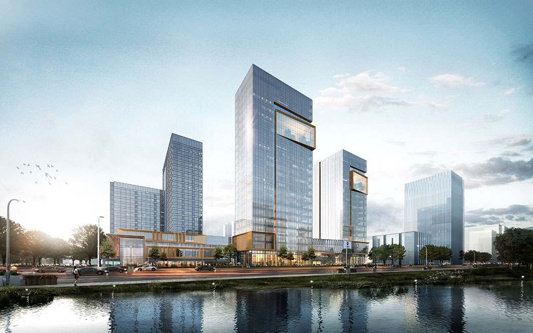 南京阳光城百家湖妄想上通过修建的错位,创立最多的观景户数;产品上通过超大面宽及边厅等多样手法,将湖景充分揽入室内;立面造型上,运用简约现代手法,公建化的玻璃面,极简的外部装饰框架,内深外浅的颜色比照等,打造气质型修建气概。妄想设计内外融合。内享地块高端商办业态外观湖光胜景。通过塔楼的围合打造围合的内部空间,同时包管互不遮挡,引入百家湖绝美景物。办公楼下的商业团结下沉广场设计,极大的富厚了地块的空间条理。