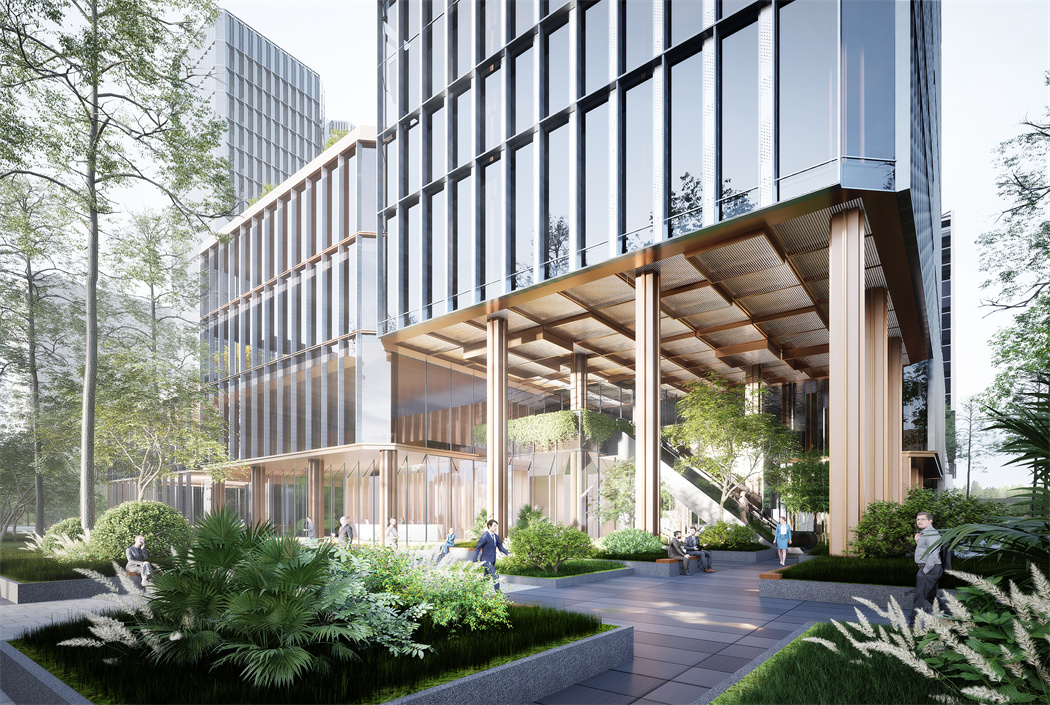 中国电子无锡数字芯谷二期,定位专业化工业高地,办公产品着重研发、效果转化及检测等功效,主要结构生产、研发办公及相关配套三大主力业态。设计首先遵照策划先行的整体性头脑,从片区工业定位着手,研判三大板块相宜的组成比例,其次接纳三大战略:通过研究焦点客户企业类型,对二期产品面积细化需求;使用高层厂房叠加方法,集约用地腾挪更多景观空间;生产楼宇混淆叠加,实现一栋楼就是一条生产线的全新组合方法。而针对芯片类企业,也从外观造型上运用数字晶格元素,实现视觉形象的母题呼应,创立园区强烈的自身识别性和在都会中的影象点。 生产片区整体功效接纳“下厂上办”一体化组成方法,实现楼宇工业链完整。在楼宇屋顶设有屋顶花园及太阳能光伏板,隐藏屋顶装备的同时实现园区绿色与科技的共融。