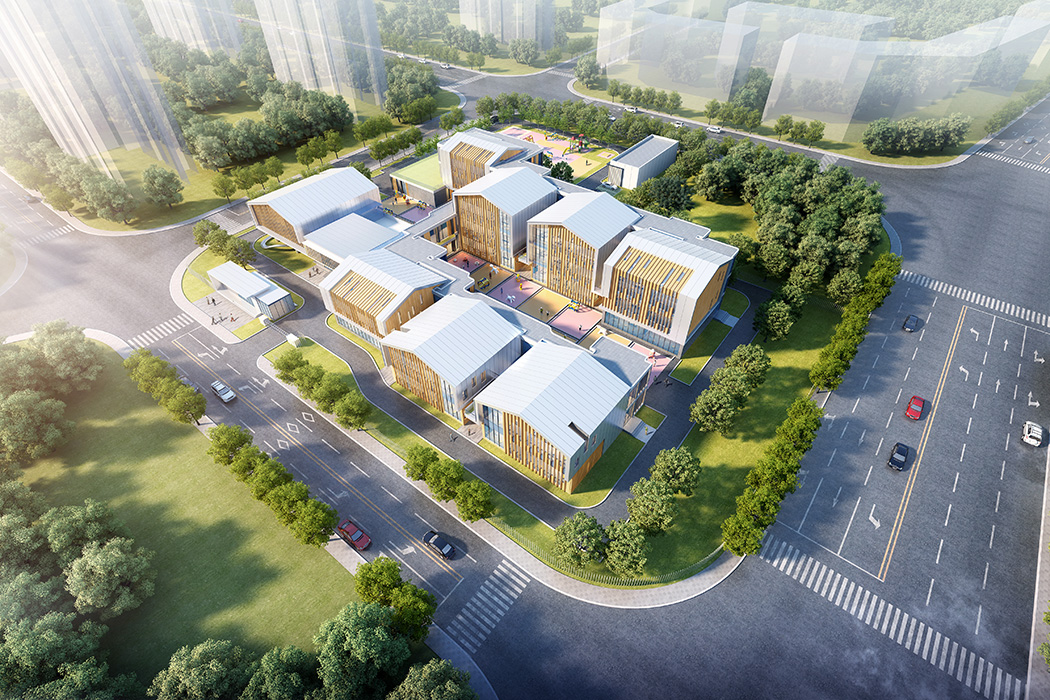 济南南北康学校及幼儿园位于济南南北康片区,沿北康路,共包括两所初中,一所小学,以及一所幼儿园。依据水平向同层模式,校园模式立异,修建情形一体化,可一连生长,打造一个可学习、可交流、可共享、可生涯的社区式、高效式、庭院化的花园式活力教学空间。