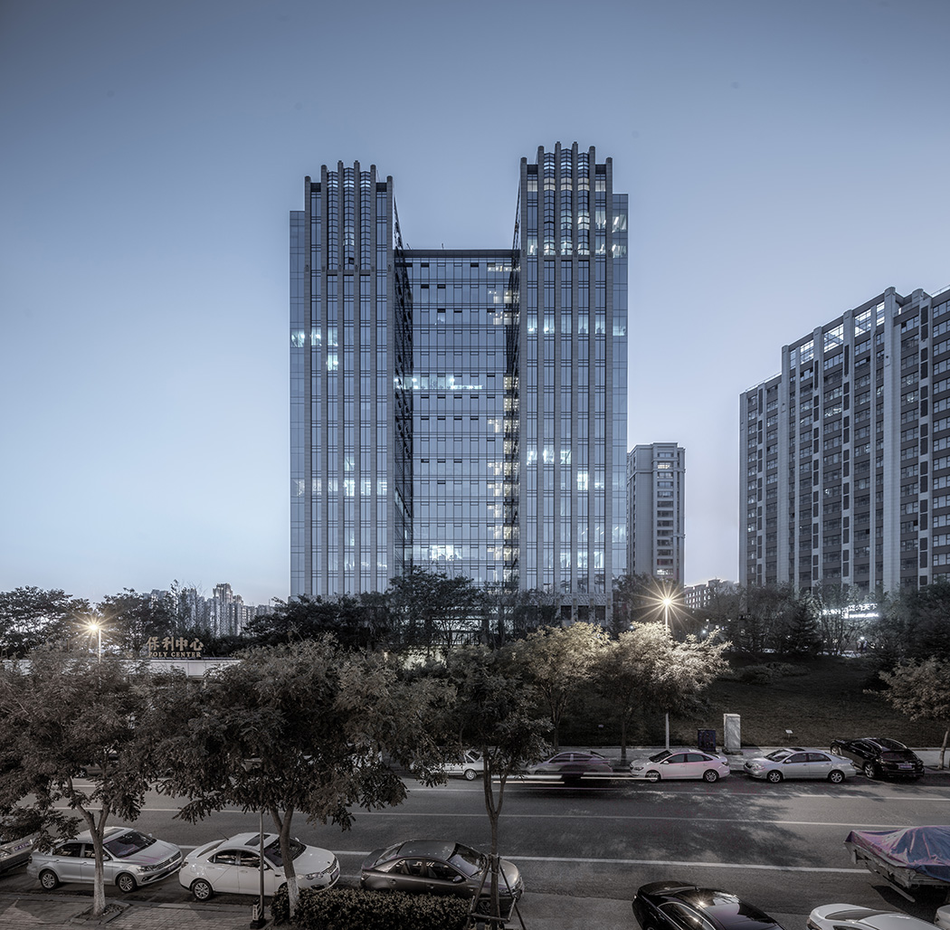 青岛保利中心位于崂山区香港东路与青大三路交汇处,背靠浮山森林公园,并可远眺海景,景观优势突出,临危不惧地处于门户地标职位。设计在园地现状条件的限制下,将最大化观海面顺应都会肌理形态睁开,并弱化修建一连展示面,形成两个体块及中心毗连体。接纳经典ART-DECO气概,契合青岛海派修建文化,修长窗带贯串修建体始终,与关闭的窗扇以及顶部的退进设计,营造出远观如轻盈薄片层层叠加的效果,立面富厚多变顺应并配合了周边都会情形中保存的多元化标准。同时,提取外地德式修建元素作为母题,成为修建装饰母题元素。立面接纳玻璃和石材两种富有现代感的质料,石材显得稳重,强调竖向线条,玻璃强调细腻,提升品质,付与修建古板与现代的双重特质。