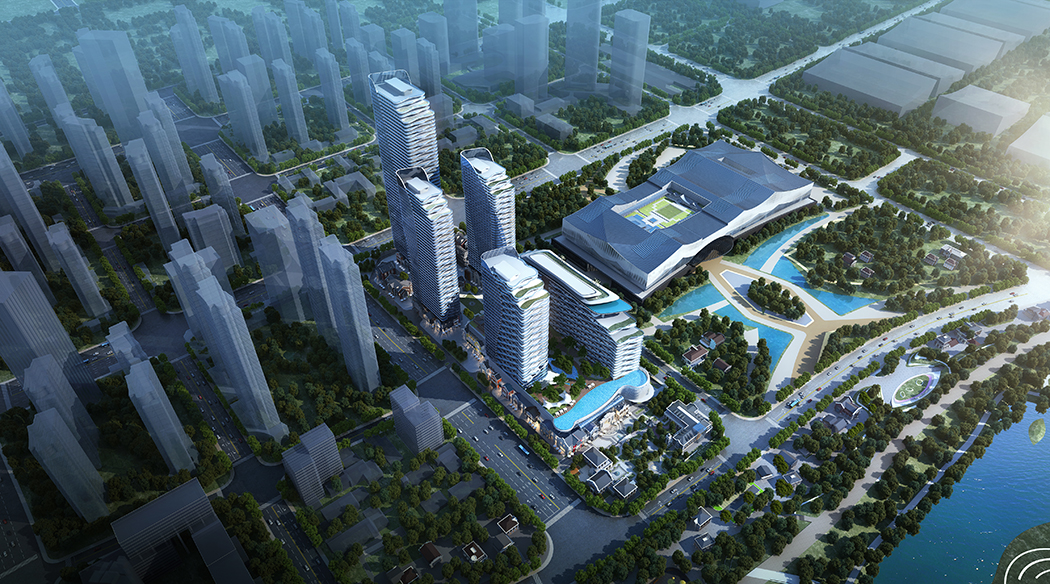 长沙融创城的设计借力高铁东城生长战略,深入挖掘地区人文资源,以得天独厚的自然景观资源为依托,力争将自然景观与历史遗产相团结,以“人文生态峡谷”为主题,打造具有地区特征,现代活力,自然生态型的都会花园度假旅馆。塔楼于周边围绕,具备180度坦荡视野,中心形成生态峡谷,将自然生态、地区人文纳入其中,出则繁华,入则清静,打造浏阳河畔亘古未有“商务、生涯、自然、社交”一站即享的高端公寓生态圈。大标准油轮型旅馆与精品服务式公寓修建,层层退台绿意盎然,面向浏阳河形成帆船的修建形态,打造了一个修建与自然协调共生的具有高度识别性的高端公寓生态圈,成为长沙生态都会修建的新规范。